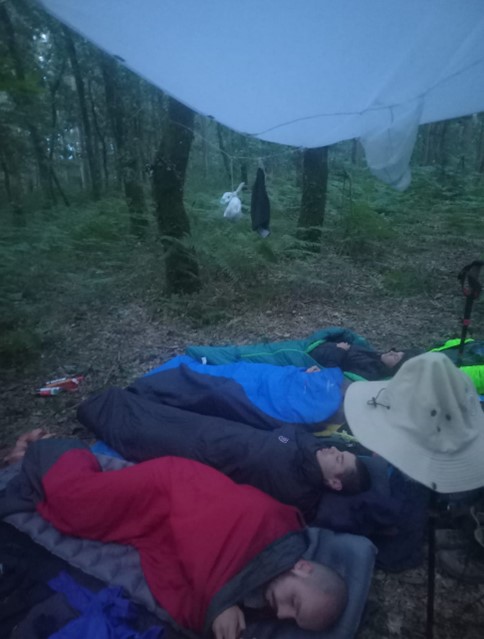 Quella notte ho dormito ovviamente malissimo e per non più di tre ore, era pieno di zanzare e faceva anche piuttosto freddo. Marco non c’era perché si era staccato dal loro gruppo qualche tempo prima. Alle due di notte siamo partiti. Nell’arrivare a Santiago abbiamo attraversato un festival con persone a fine serata che, come zombie, si trascinavano nella ricerca della loro macchina; qualcuno ogni tanto vomitava. Erano comunque abituati ai pellegrini perché non facevano più di tanto caso a cinque persone con lo zaino alle quattro del mattino, era una scena piuttosto kafkiana e divertente.