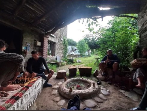 La scelta di andare dall’alchimista si è rivelata azzeccata: lui, Juan, è un signore sulla quarantina, che vive in un casolare in semi-eremitaggio insieme ad una ragazza norvegese di vent’anni pellegrina come noi, che ha trovato quel posto lungo il Cammino e ha deciso di fermarsi; quando siamo arrivati noi, era lì da due mesi ormai. L’esperienza è stata quella del donativo con la D maiuscola. Gli ospiti eravamo: il ragazzo tedesco che mi aveva dato la dritta, Lucie ed io quando, poco prima di cena, è arrivato un gruppone di dieci ragazzi italiani. L’Alchimista all’inizio si è mostrato evidentemente preoccupato e anche un po’ infastidito da un tale afflusso di persone, ma poi ha tirato fuori uno spirito di adattamento notevole, mettendo dei materassi nella sua stanza della meditazione e creando un posto letto per tutti. Inoltre, ci ha portati nel suo orto in cui abbiamo raccolto pomodori, insalata ed altri ortaggi tutti insieme. Abbiamo cucinato una pasta e il proprietario di casa ha condiviso vino e formaggi. Abbiamo trascorso la serata attorno al fuoco a chiacchierare, giocare a scacchi e suonare la chitarra. Tutto completamente fornito dalla provvidenza.