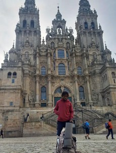 Abbiamo raggiunto l’ufficio del pellegrino di Santiago, dove c’era già una persona in attesa, e ci siamo messi a dormire lì davanti coi materassini poiché non erano ancora le sette del mattino e l’ufficio avrebbe aperto alle nove. Da lì a poco sarebbe arrivata tantissima gente a mettersi in coda. La diceria era vera: eravamo tra i primi dieci e ci hanno offerto un pranzo all’hotel.